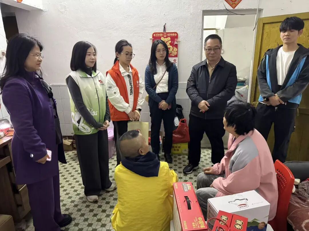 仪式结束后,慰问组一行前往困境儿童小山(16岁)家中开展走访慰问。小山现就读于职业学校,其父母均为残疾人,家庭主要依靠低保金维持生计。慰问组与小山父母亲切交谈,细致了解家庭当前的实际困难和现实需求,叮嘱二人悉心照料孩子成长,同时务必保重自身身体。慰问组还为其家庭送上精心准备的慰问品,鼓励他们保持乐观心态,勇敢积极面对生活。